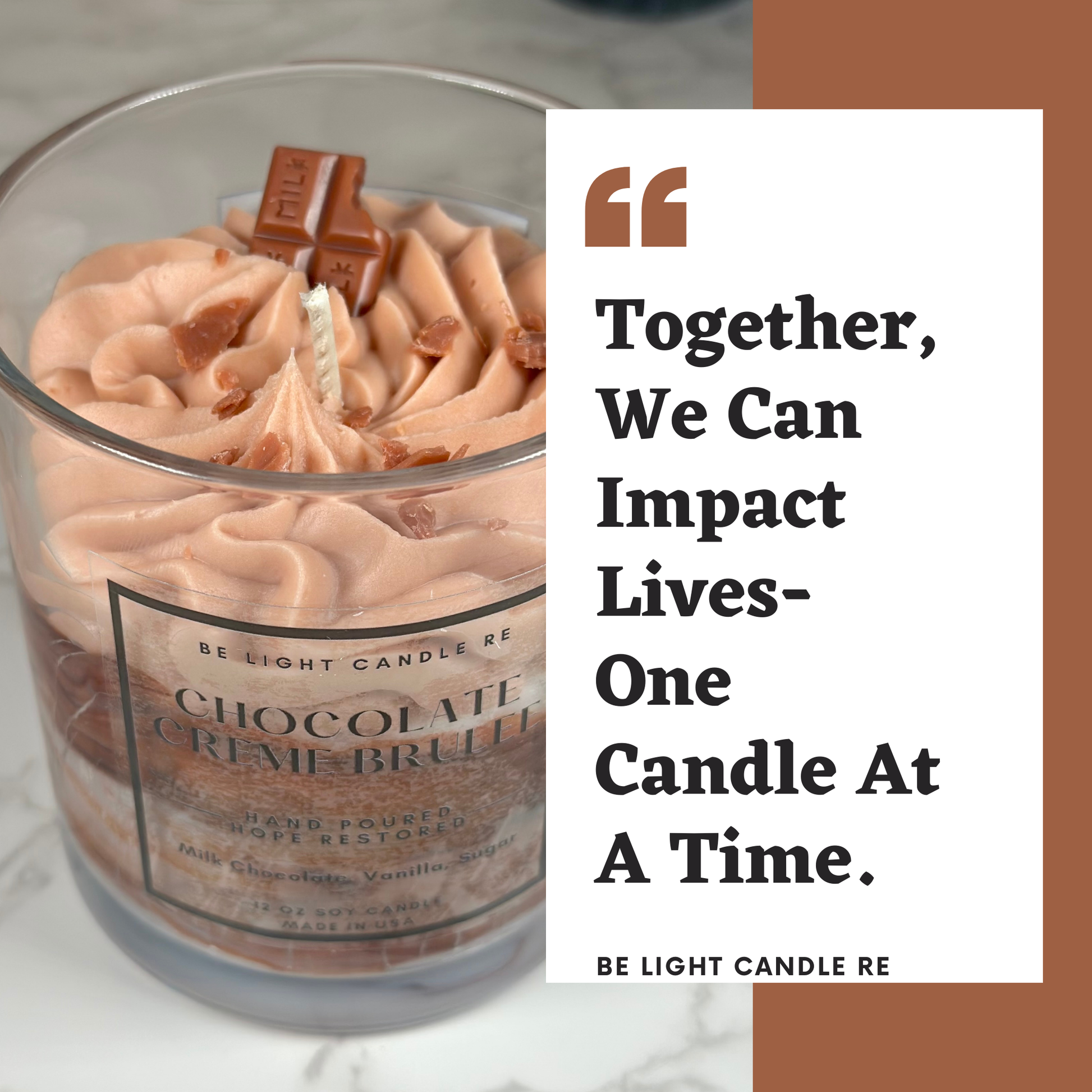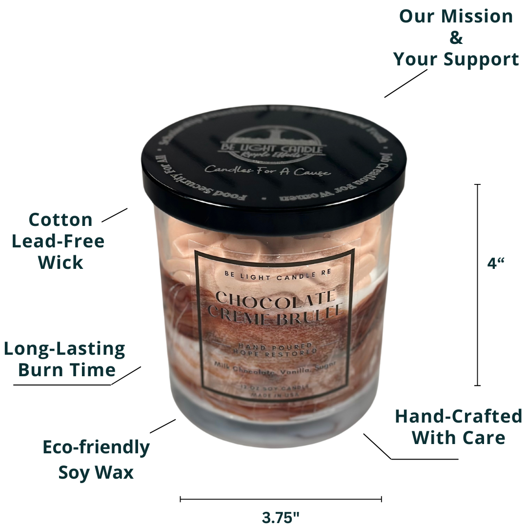 A perfect blend of rich milk chocolate, creamy vanilla, and a hint of spice, this candle captures the essence of a freshly made chocolate creme brulee.