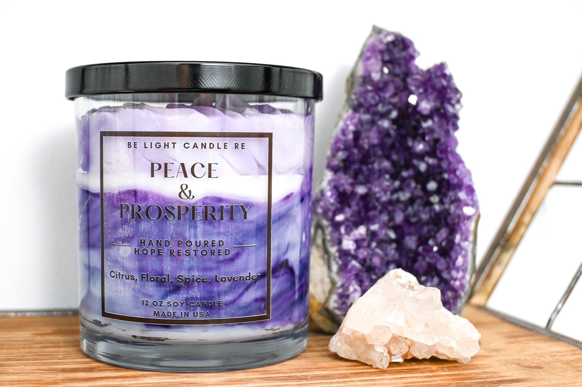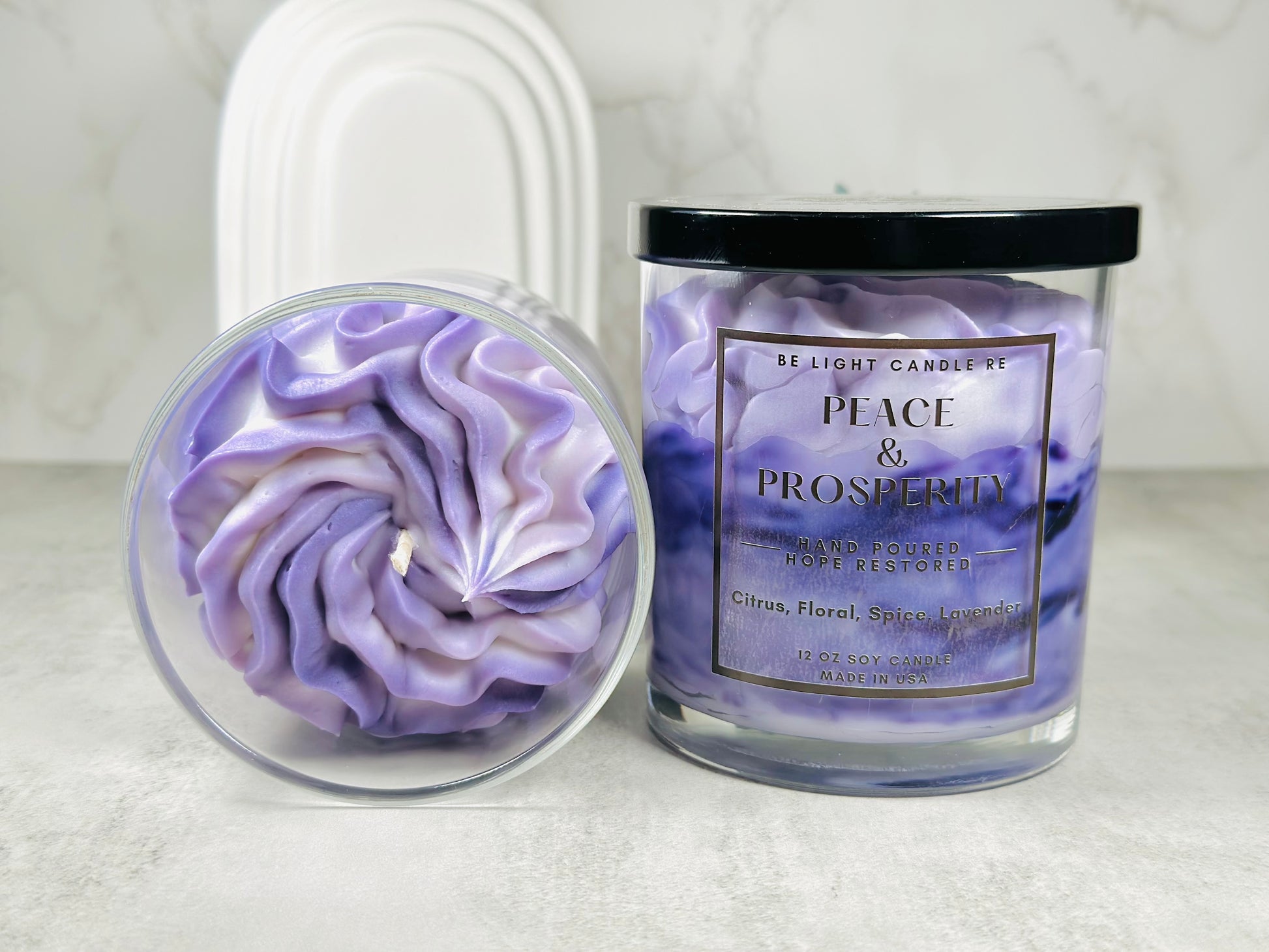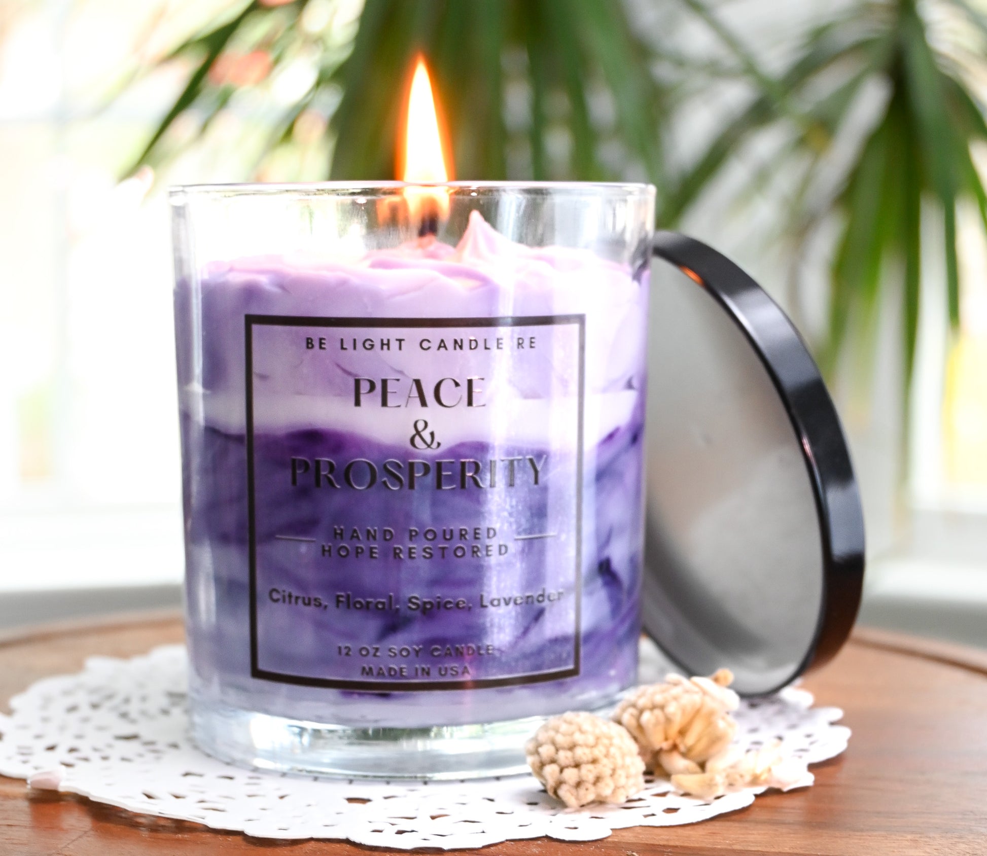 Elevate your space with an elegant candle blend that combines the essence of citrus, spices, sweet florals, and a touch of lavender. This harmonious combination invites a sense of peace and prosperity to fill the air.