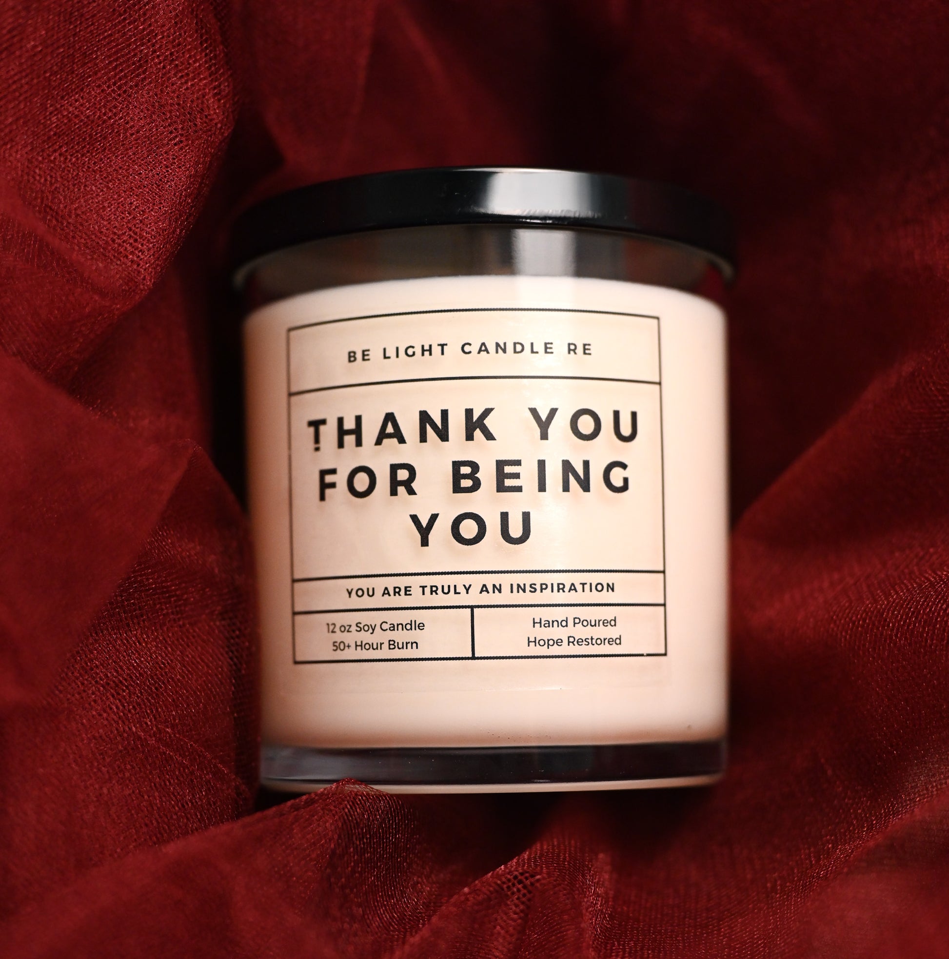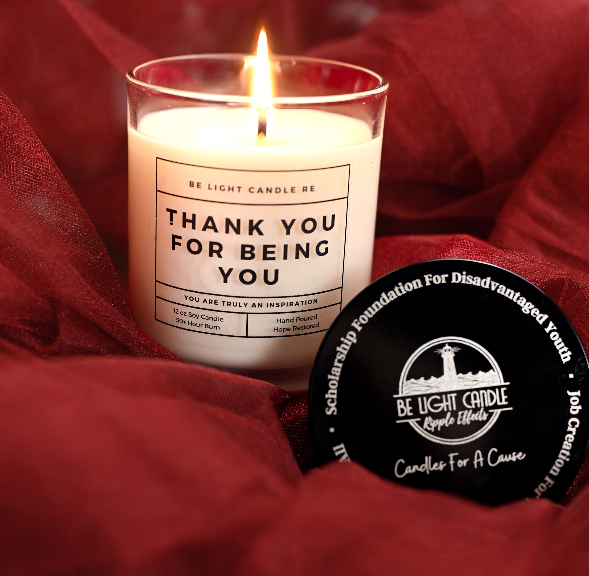 Thank You for Being You, You Are Truly an Inspiration – a candle that radiates gratitude and admiration. With uplifting notes of citrus, jasmine, and cedarwood, it’s the perfect gift to show someone how much they mean to you.